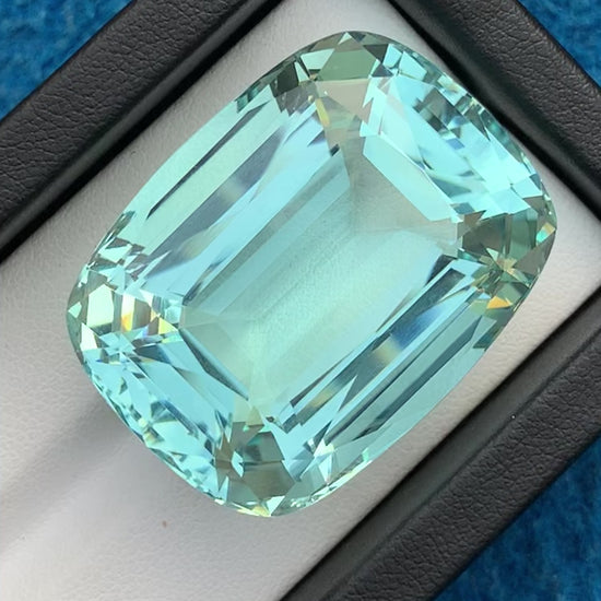 AQUAMARINE 💎 : Absolutely a really loving to look of this Cushion Shape Sky Blue Color Beautiful Natural (AQUAMARINE @Pakistan. The Gem weight is ( 112.75 Carat .