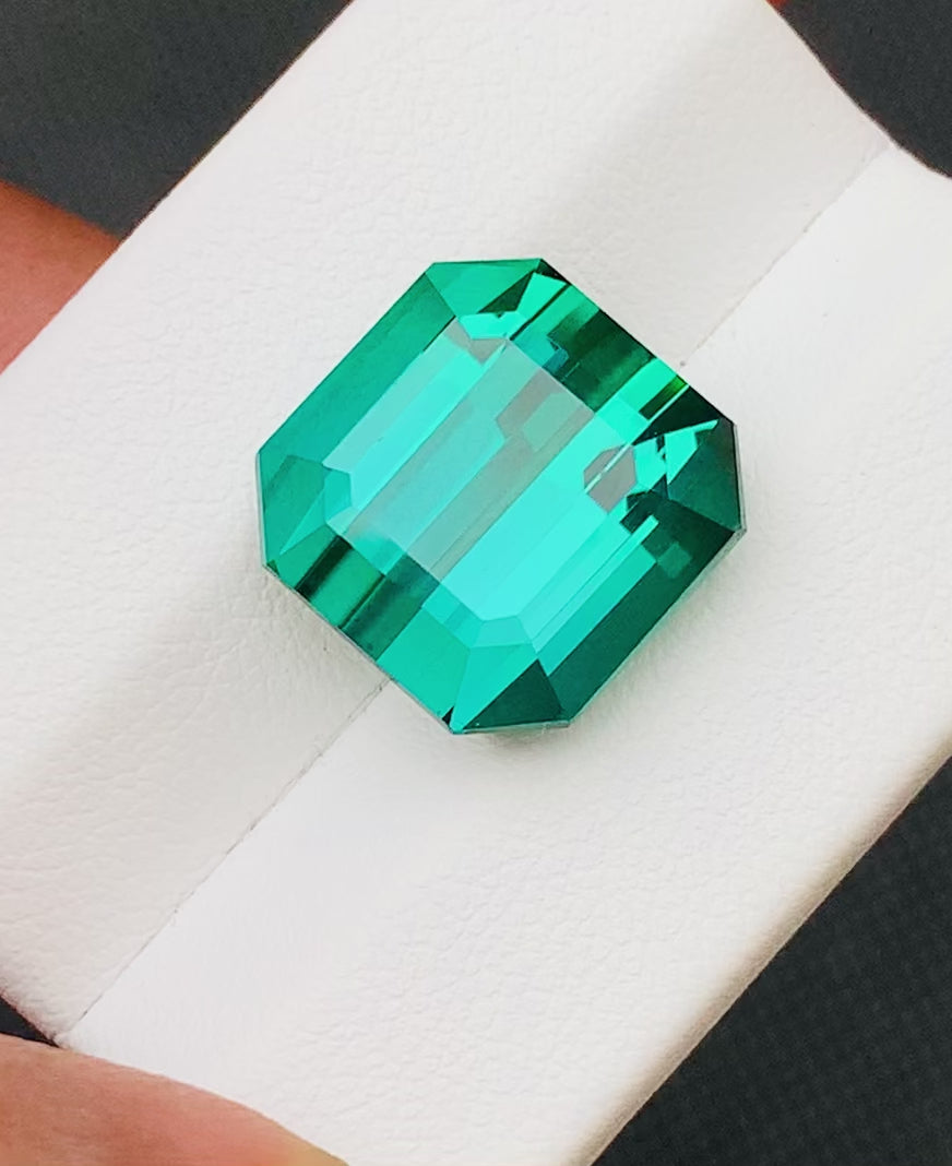 Absolutely a really loving to look of this Emerald Shape Top Bluish Green Color Beautiful Nature ( Tourmaline @ Afghanistan . The Gem weight is ( 15.40 Carat .
